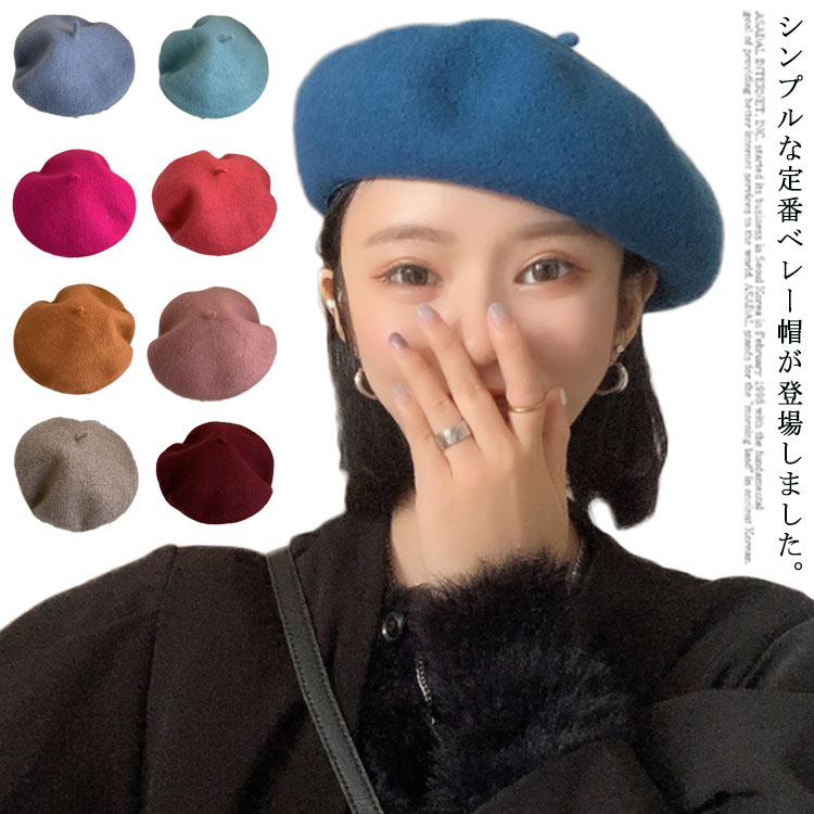 ベレー帽 全20色 レディース 帽子 無地 秋冬 シンプル おしゃれ フェルト レディースファッション 可愛い ピンク 赤 黒 白 ブラック ワイン あったか 定番 ブルー