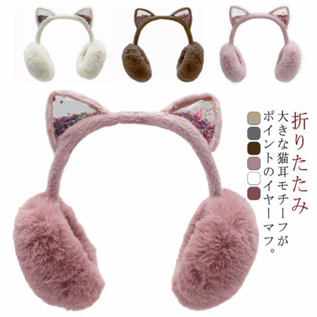 猫耳付き 猫耳モチーフ 耳あて 猫耳付き 折り畳み ボア素材 暖かい 防寒 保温 耳当て