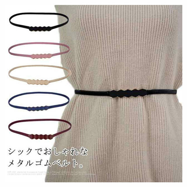 おしゃれなメタルストレッチベルト ウェストマーク 細め アクセサリー ファッション小物