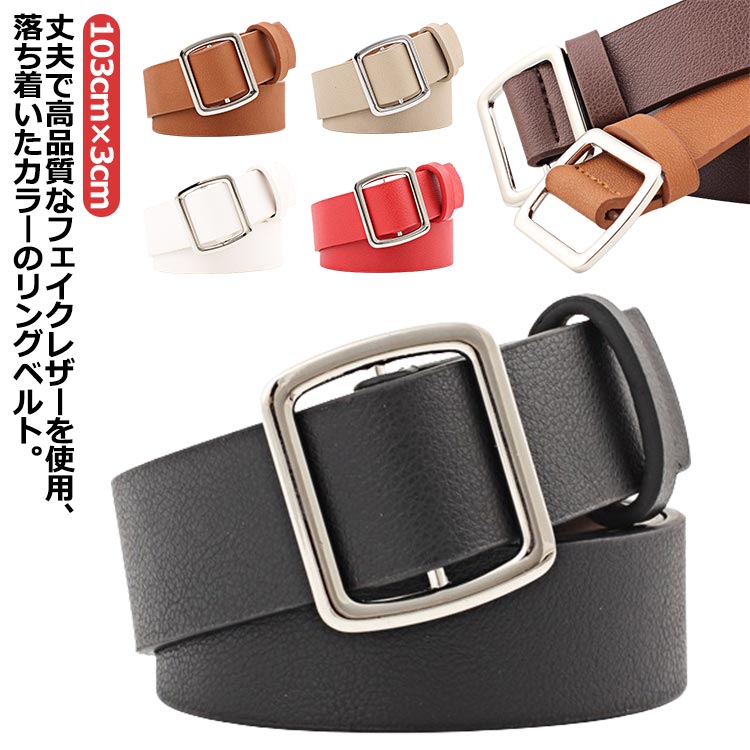 ベルト サスペンダー スクエアバックルベルト レザー ベルト フェイクレザー ベルト レディース 細い レザー ベルト