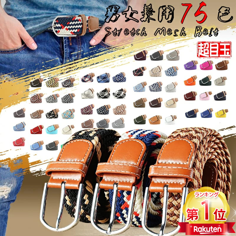 男女兼用 メッシュベルト メンズ レディース ベルト フリーサイズ 大きいサイズ 編み込み 細 ストレッチ 穴なし 太ベルト 太め 大きい 無段階 ゴムベルト おしゃれ 黒 ビジネス カジュアル