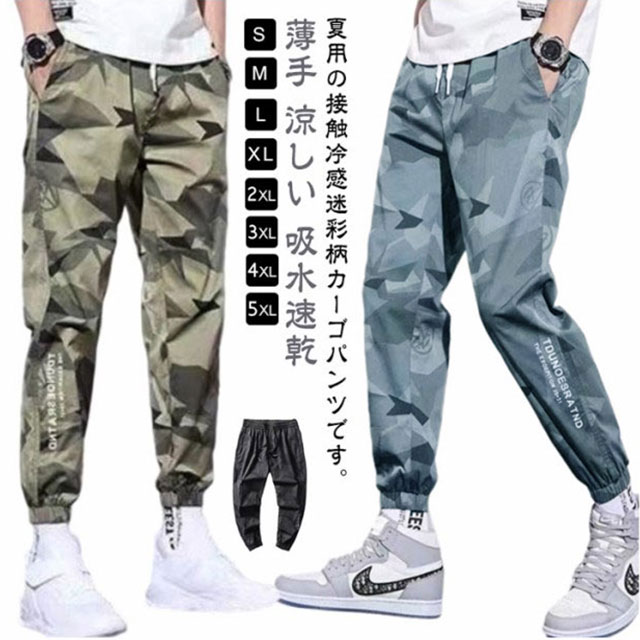 送料無料 冷感パンツ 迷彩柄 カジュアル 作業ズボン ロング丈 薄手 ジョガーパンツ 九分丈 パンツ