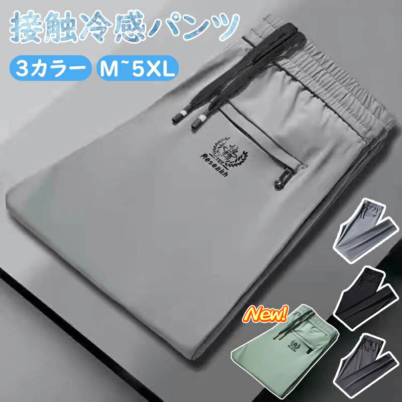 9.11迄/冷感パンツ メンズ アイスシルクパンツ ファスナーポケット カジュアルパンツ 接触冷感 薄手 涼しい 大きいサイズ 調整可能 ストレッチ 夏 春 秋 吸汗 速乾 UVカット スポーツパンツ