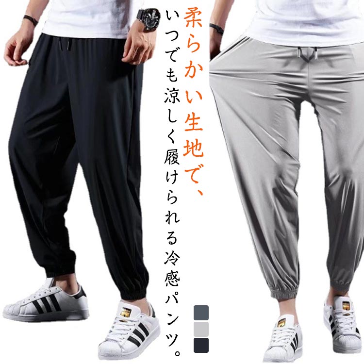 接触冷感 長ズボン メンズ ロングパンツ 夏物 アイスシルクパンツ ストレッチパンツ スウェットパンツ 超伸縮 涼しい ボトムス 薄手 イージーパンツ エアパンツ 部屋着 ショートパンツ チ エアパン