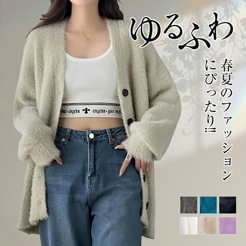 カーディガン ニット Vネック ジャケット レディース シャギーニット トップス ニットコート フェザーカーディガン ニットカーデ ゆるニット 体型カバー プルオーバー あったか 防寒 春 ふわふわ