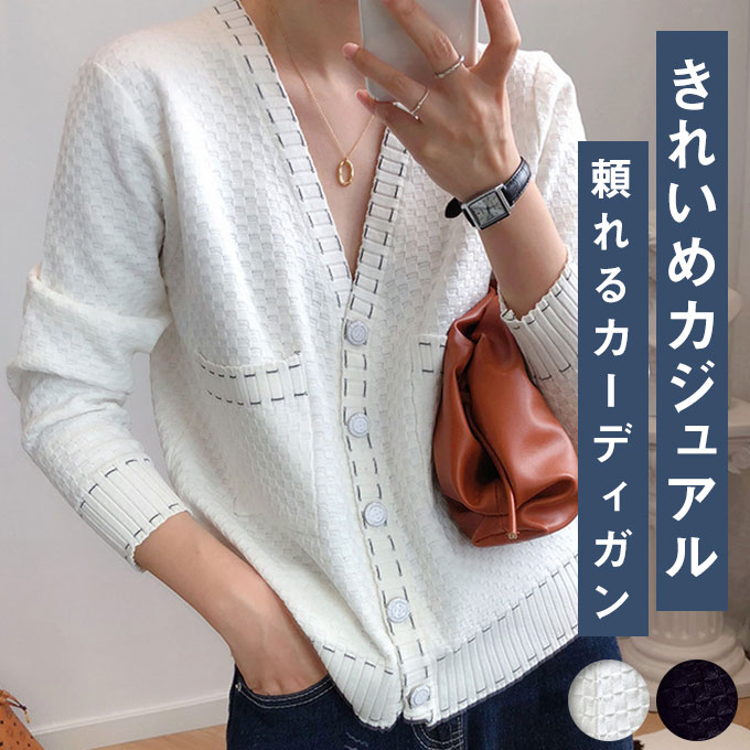 カーディガン レディース 春 秋 薄手 羽織り きれいめ 長袖 Vネック バイカラー 黒 白 通勤 オフィス オフィスカジュアル トップス おしゃれ シンプル 体型カバー 大人カジュアル 30代 韓国