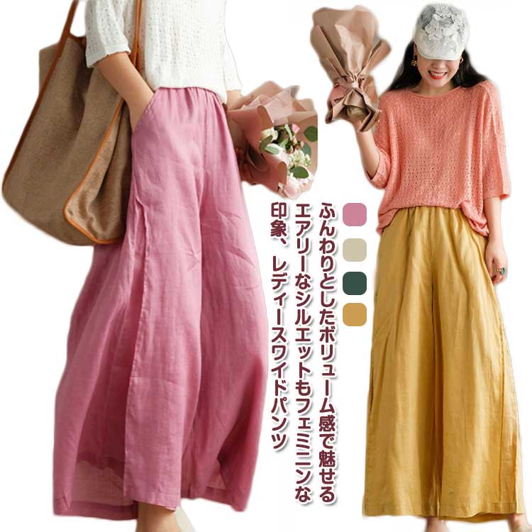 ゆったり ナチュラル きれいめ ガウチョ ガウチョパンツ 夏 春夏 レディース リネン ワイドパンツ 涼しい