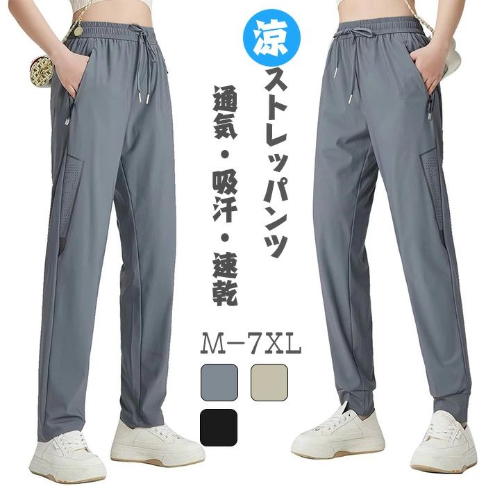涼しい ロングパンツストレッパンツ スリム美人 冷感 2type選べる脚長効果 レディースパンツ ズボン アイスシルクパンツ