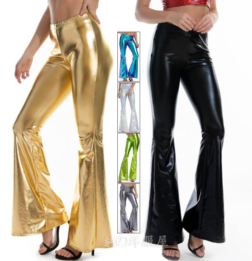 パンタロン フェイクレザー パンツ スキニー ベルボトムス エナメル ラッパパンツ レディース ロング丈パンツ 光沢 ピカピカ 欧米 ダンス衣装 夜店 クラブ ジャズ HIPHOP パン 演出