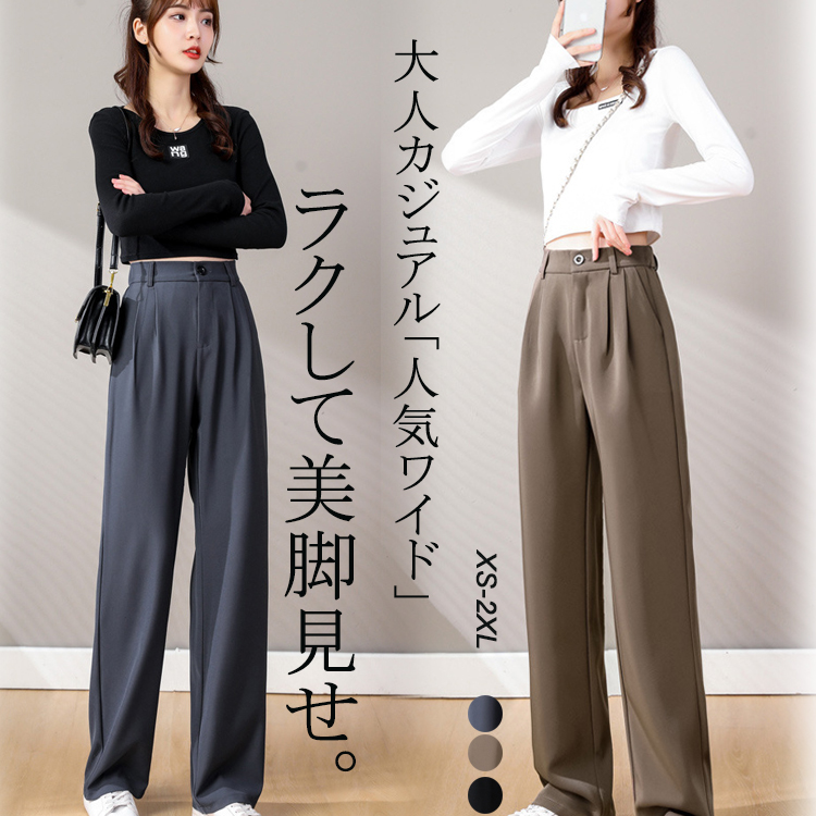 パンツ レディース きれいめ ワイドパンツ 春 秋 カジュアル ゆったり ロングパンツ ボトムス 長ズボン 楽チン マキシ丈 ハイウェスト コーデ おしゃれ 細見え 脚長効果 美脚 大きい 体型カバー