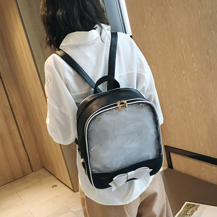 痛バッグ リュック 痛バ 痛リュック レディース ビニールバッグ 鞄 リボン 透明 透明バッグ 見せバッグ クリアバッグ かわいい イベント 缶バッジ 推し活 可愛 大容量 オタク ヲタ オ A4対応