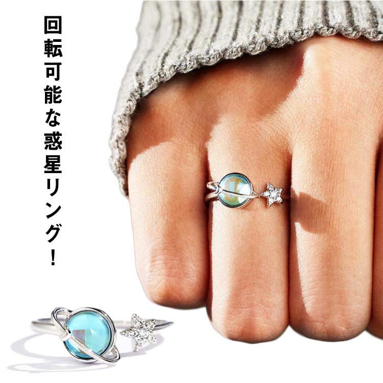 惑星リング 不安解消リング フィジェットリング スピナーリング ストレス解消リング 不安 緩和 癖対策 スター&ムーンデザイン リラックス 回転リング オープン リング 不安解消 スピナーリ 調節可能