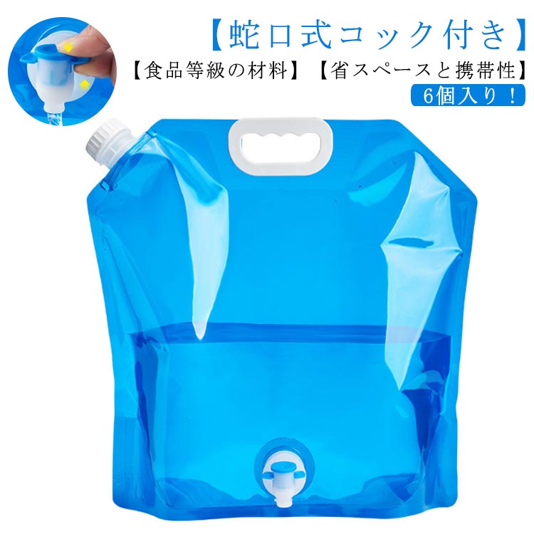 旅行 蛇口付 給水袋 ウォーターバッグ 6個入り ウォータータンク 非常用給水バッグ 折り畳み 避難 持ち運び 災害用 10L 繰り返し使用 大 食品等級