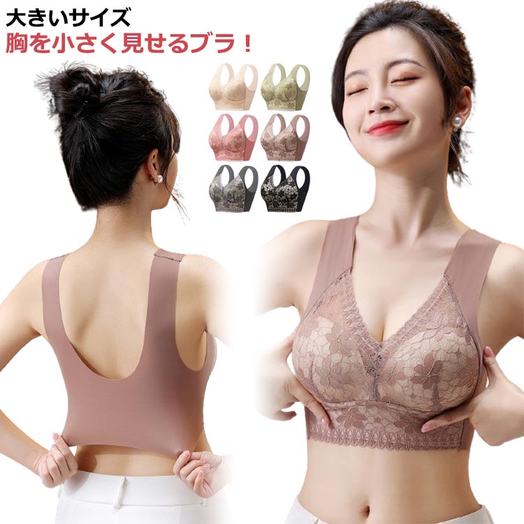 ブラジャー 大きいサイズ 小さく見せる 小さく見せるブラ ノンワイヤーブラ 胸を小さく見せるブラジャー