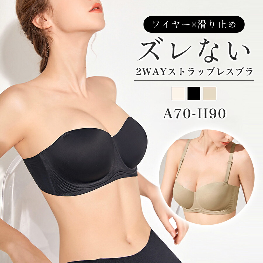 ブラ ストラップレス 2WAY インナー 下着 ブラジャー 脇高 ズレない 盛れる 谷間 紐無し シームレス ドレス オフショル チューブトップ 結婚式