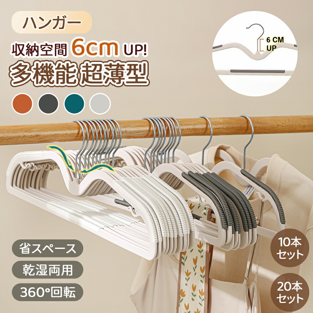 ハンガー 短い 多機能ハンガー 超薄型 360°回転フック 凹む 衣類用 薄く滑り止めハンガー ハンガーラック ズボンハンガー 10本 20本 30本 50本 セット 回転フック 収納 洗濯 乾湿両用