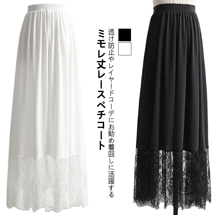 ペチコート ロング スカート 大人 ゆったり レディース レース ペチスカート 裾 インナー マキシ丈 きれいめ ガールズ ホワイト 黒 重ね着 見せ 裾レース付き 体型カバー ペチコー 白