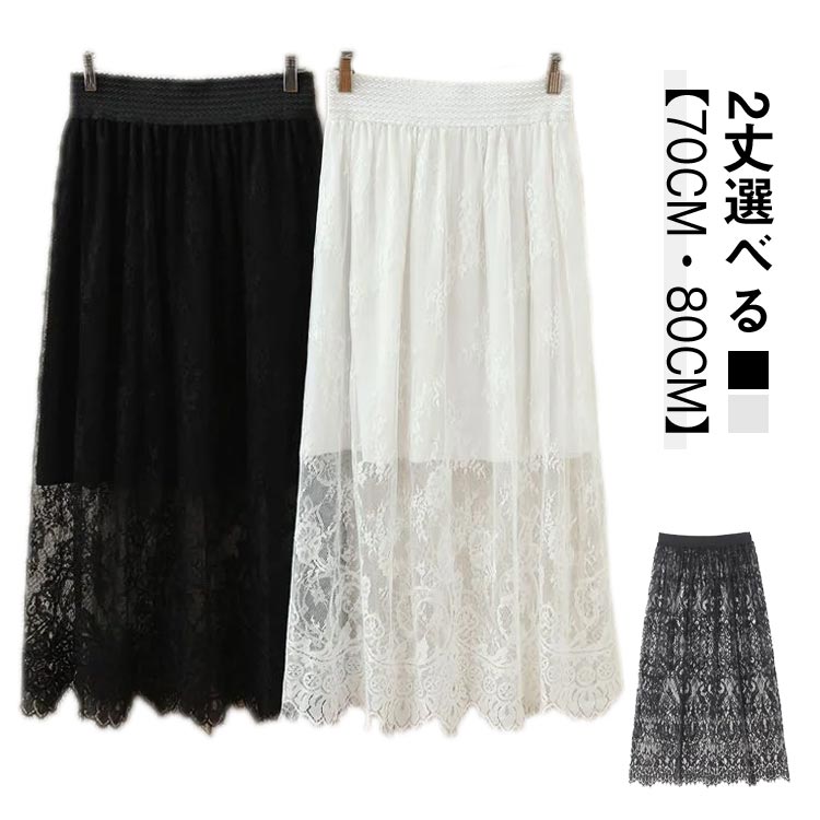 ロング丈 70 80 インナースカート ペチスカート 裾 見せ レイヤード 裾レース