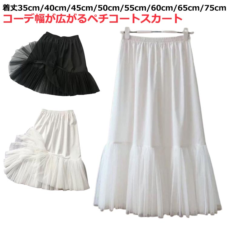 スカート チュール 透けない レイヤード 重ね着 下 ペチコート 裏地 レース 裾ふんわり スカート用 膝丈 インナー ペチスカート レディース マキ 下着