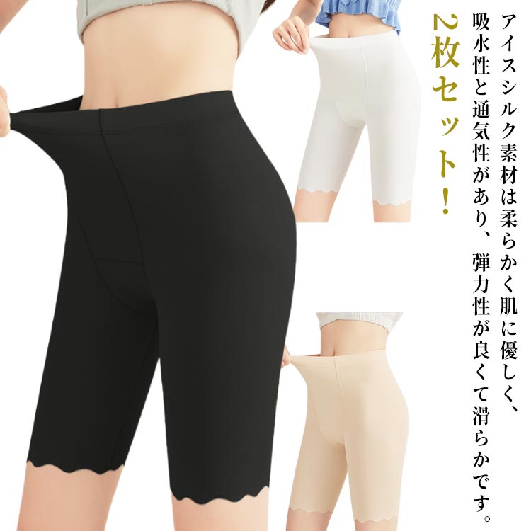 ペチパンツ ペチコート レディース 夏用 アイスシルク 通気性 ストレッチ ヒップアップ 安全パンツ 無縫製 ノンシーム サラサラ 透けない 肌着 薄手 冷感 体型カバー 快適 通勤 シ 締め付けない