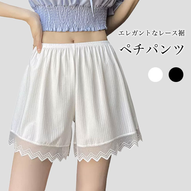 ペチパンツ レディース 見せパン 夏 ショートパンツ 下着 パンチラ防止 インナーパンツ ペチコート パンツ 見せパンツ レース裾 薄手 短パン 部屋着 インナー ボトムス ブラ ルームウェア