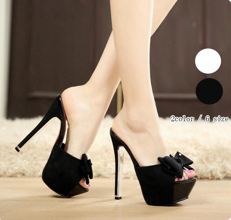蝶むすび付き ハイヒール ミュール サンダル 黒 レディース 靴 美脚 大きいサイズ 小さいサイズ エナメル パーティ キャバサンダル 厚底サンダル パーティー 2次会 プラットフォーム 履き 結婚式