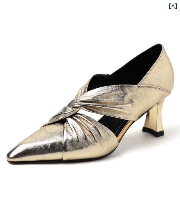 パンプス 高貴 金色 カバー付 フルレザー ハイヒール ポインテッドトゥ ワンステップ スリッポン カジュアル レトロ 厚手 シングル 春 レディース 軽量 オフィス 日常使い パーティ 通勤