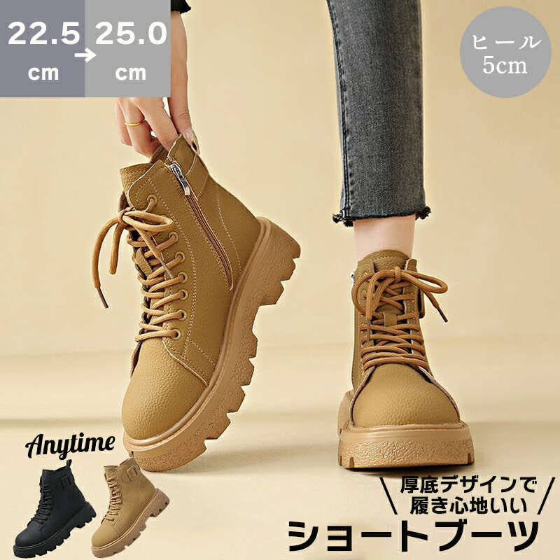 ショート丈ブーツ 婦人ブーツ 秋冬ブーツ シューズ 黒 ショート サイドジップ ブーティ編み上げブーツ ショート ブーツ 厚底 防寒 マウンテンブーツ