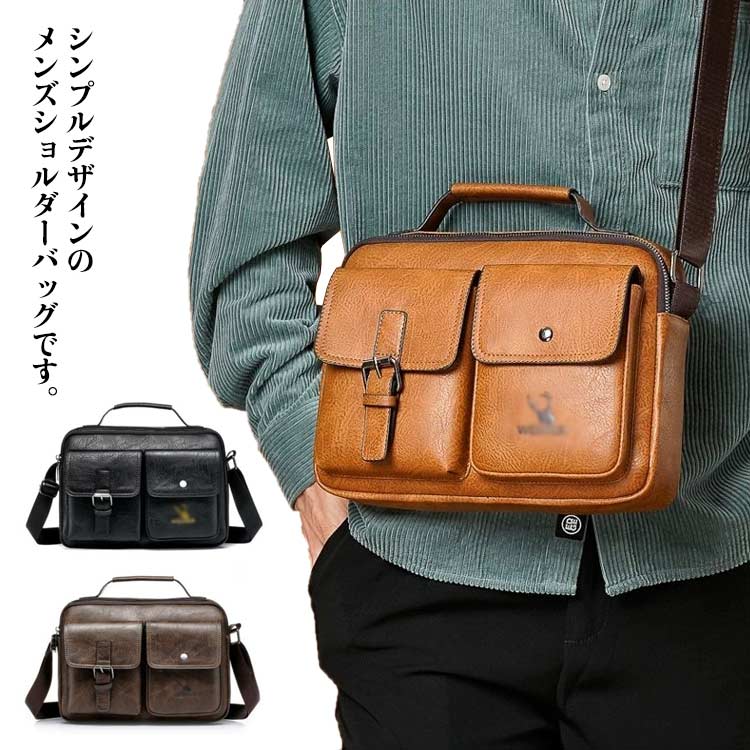 メンズ ショルダーバック ビジネス 斜めがけ 大容量 ワンショルダーバッグ カジュアル PUレザー 手提げかばん バッグ メンズバッグ 小物入れ カバン お出かけ トートバッグ