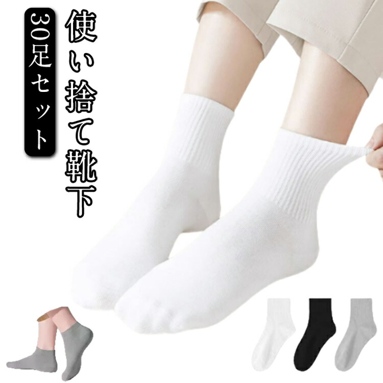 30足 セット 使い捨て 靴下 ソックス フットカバー レディース メンズ 抗菌 吸汗 消臭 綿 コットン 男性用 女性用 くつした 脱げない 出張 旅行 必需 ローソックス 春 夏 クルーソックス