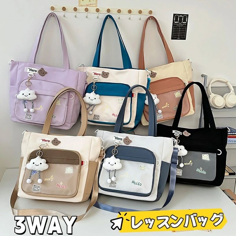 学生バッグ レッスンバッグ 通学 3 学生カバン ショルダーバッグ スクールバッグ 肩掛けベルト付 絵本袋 手提げ トートバッグ 学生鞄 斜め掛け 大容量 小学生 中学生 通園