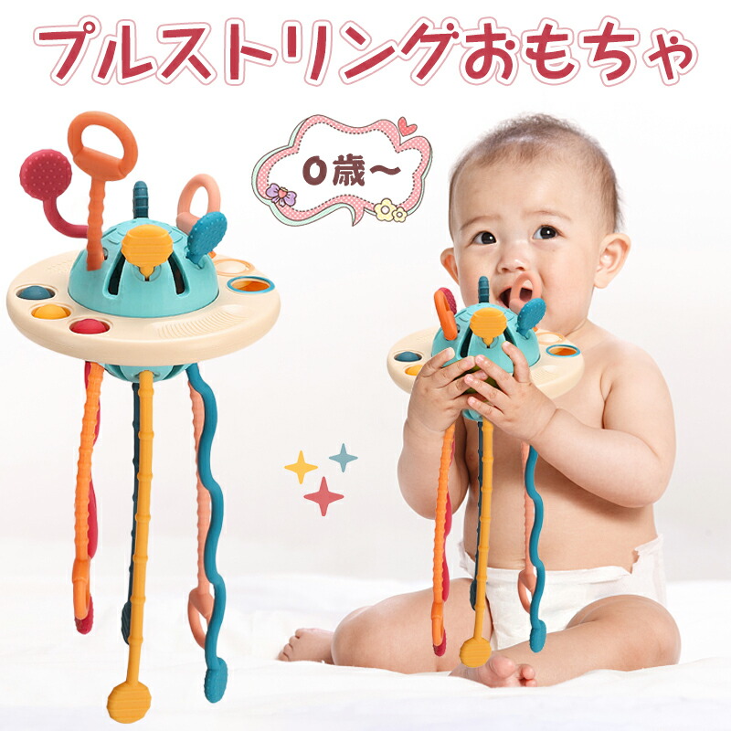 赤ちゃん おもちゃ プルストリングおもちゃ 歯固め 指先トレーニング 孫 男の子 女の子 ベビー向け 知育玩具 出産準備 お出産祝い クリスマス プレゼント 指先遊び 握る UFO 音 触感 引っ張る