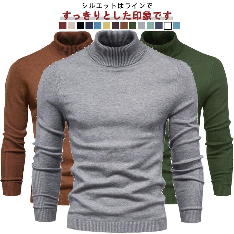 新色追加 全14色 メンズ スリム ケーブル編み 暖かい ハイネック 無地 タートルネック ニットトップス ニット リブ編み リブニット 防寒 インナー おしゃれ 大きいサイ 秋冬