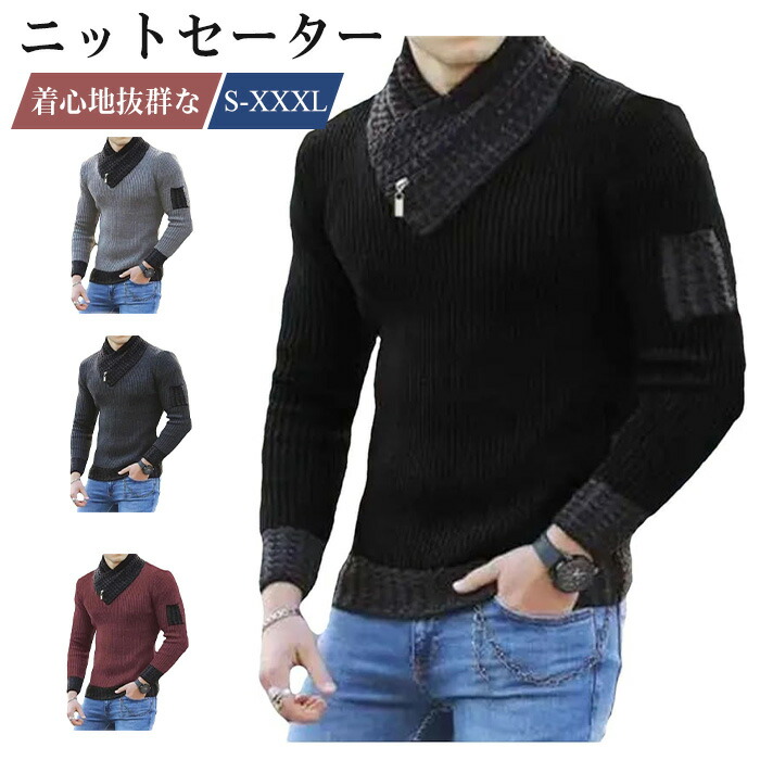 ニットセーター ニット トップス 大きいサイズ タイト 男性 長袖 セーター 細身 秋服 冬物 送料無料