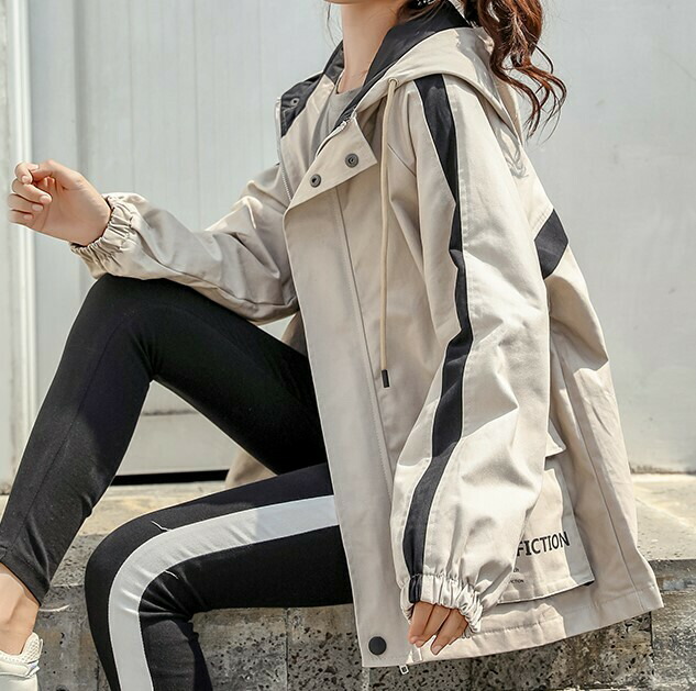 マウンテンパーカー ウィンドブレーカー ブルゾン オーバーサイズ ミドル丈 女性 アウトドア 長袖 アウター 春 秋 韓国 原宿 ブラック ベージュ アプリコット イエロー ファッション スカイブルー