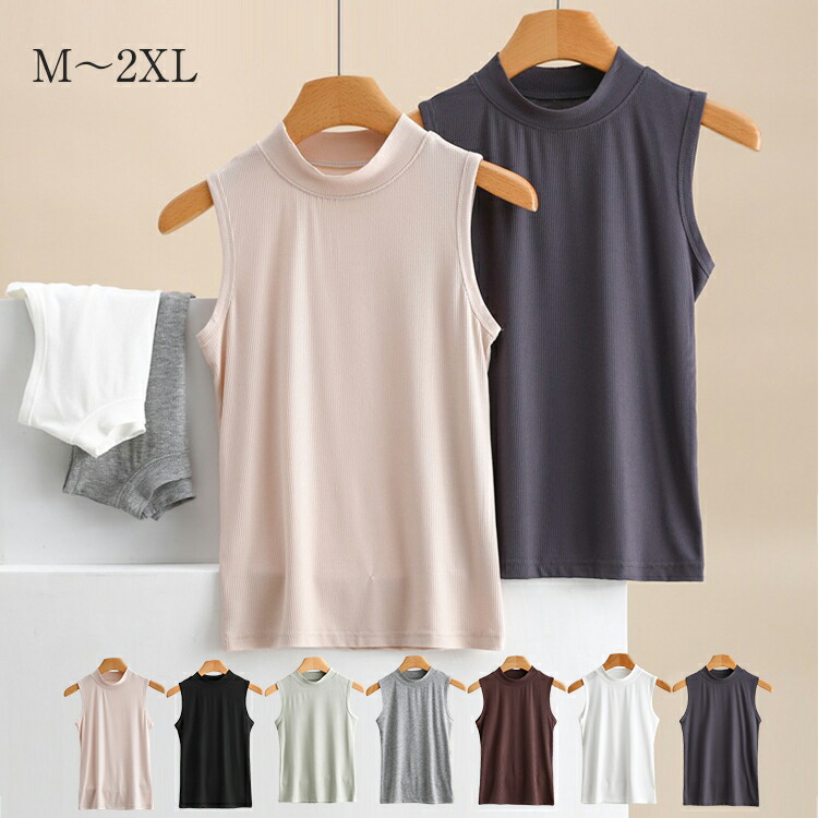 タンクトップ ノースリーブ レディース ハイネック 袖なし カットソー Tシャツ ティーシャツ 大きいサイズ 無地 シンプル インナー 春 夏 秋 おしゃれ かわいい トップス カジュアル エレ 女性