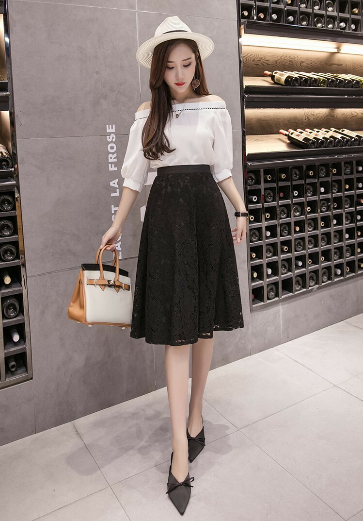 レーススカート Aライン フレア 膝丈 レディース 無地 ハイウエスト ボトムス エレガント レース 裏地 韓国 10代 20代 30代 40代 50代 ベージュ ブラック おしゃれ 大人 綺麗 上品