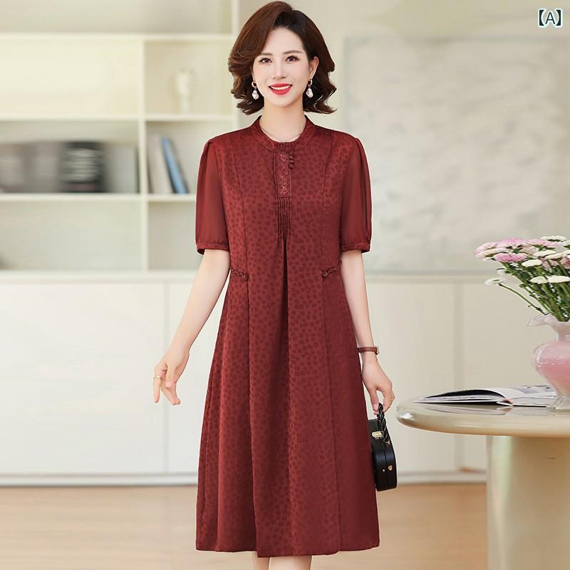 ワンピース きれいめ パーティー 婦人 エスニック 優雅 プルオーバー チャイナ風 ラウンドネック ゆったり 夏 エレガント カジュアル 上品 レディース 通気性