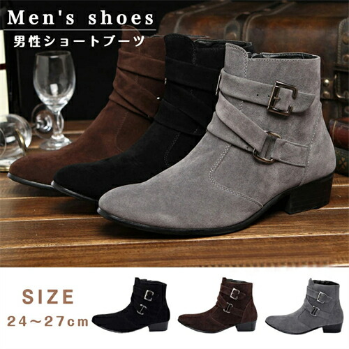 ショートブーツ メンズ シークレット 5cm身長UP スエード サイドジップ 紳士靴 ワークブーツイギリス風 カジュアル ウエスタンブーツ
