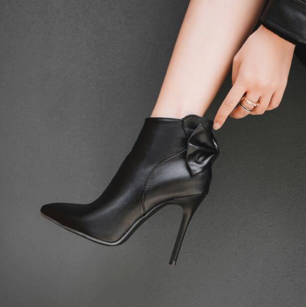 レディースブーツショートブーツ ピンヒール サイドジッパー バックファスナー付 10センチヒール細ヒール大きいサイズあり ポインテッドトゥブーティー冬靴春秋美脚効果