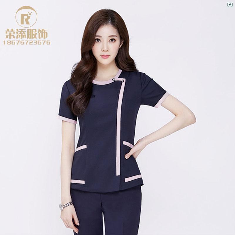 レディース チュニックオシャレ仕事着かわいい 韓国 ビューティーサロン 美容師 作業着 スパ タトゥー 刺繍 ネイリスト プロ ウェア 整形 外科 ナース 制服 ズボン 病院