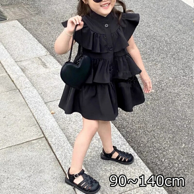 キッズ フリルブラックワンピース 子供服 女の子 ワンピース 法事 フォーマル 半袖 服 ブラックフォーマル ドレス 韓国子供服 喪服 冠婚葬祭 葬式 正装 ワンピース黒 ハーロウィン 礼服