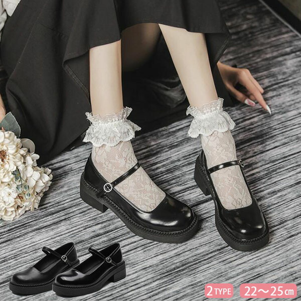 ストラップパンプス ロリータ靴 ガーリー ローヒール ラウンドトゥ チャンキーヒール 地雷系 ゴスロリ 疲れない コスプレ イベント おでかけ デート