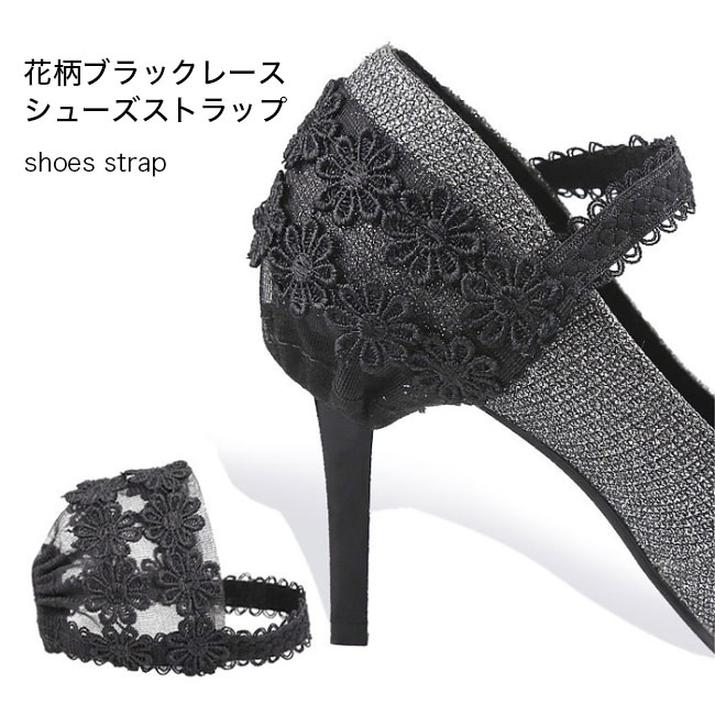 シューズバンド レース シューズストラップ 脱げ防止 パンプスストラップ 1ペア 花柄レース ブラック パンプスベルト ゴムバンド シューズベルト レースストラップ パカパカ防止 ストレッチ