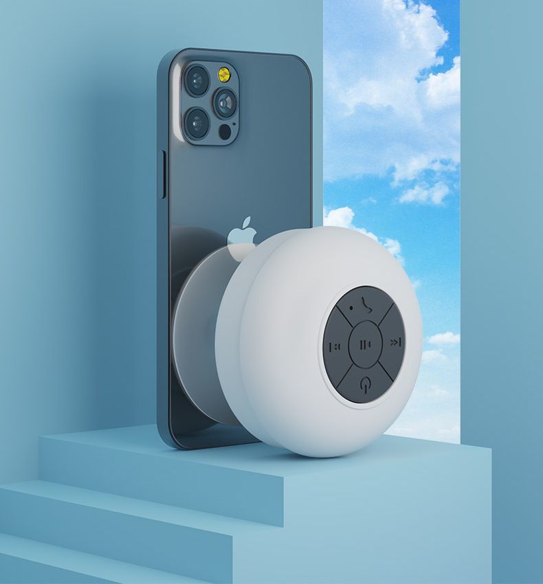ワイヤレススピーカー 防水 ポータブルスピーカー Bluetooth 吸盤式 USB充電 リチウム 小型 持ち運び キッチン ビビッドカラー 丸型 円形 サークル 可愛い ホワイト ブラック おしゃれ