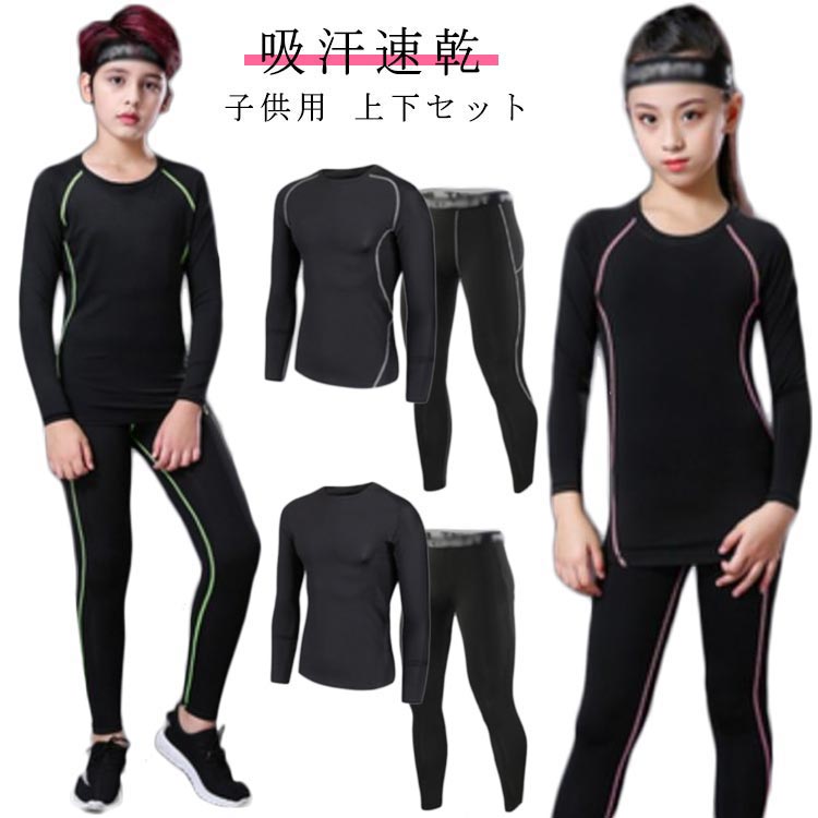 コンプレッションウェア セットアップ キッズ スポーツ アンダーウェア 上下セット ジュニア サッカー 運動着 ストレッチ 吸汗 速乾 男の子 防寒 インナーシャツ 長袖 女の子
