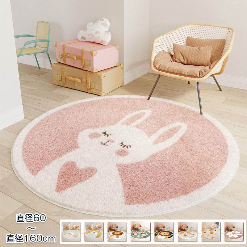 カーペット 丸形 直径60~160cm ラグ 洗える 円形 ラグマット おしゃれ ウサギ クマ オールシーズン ウォッシャブル 床暖房対応 じゅうたん 滑り止め 大判 耐磨 高級感 寝室 雰 ふわふわ
