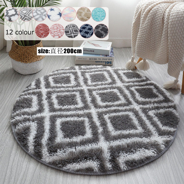 ラグマット 直径200cm 円形 円形ラグ 丸ラグ ラグカーペット フロアマット 玄関マット 絨毯 円形マット 洗える シャギー おしゃれ オシャレ シャギーラグ 春夏秋冬 滑り止め付 北 床暖房対応