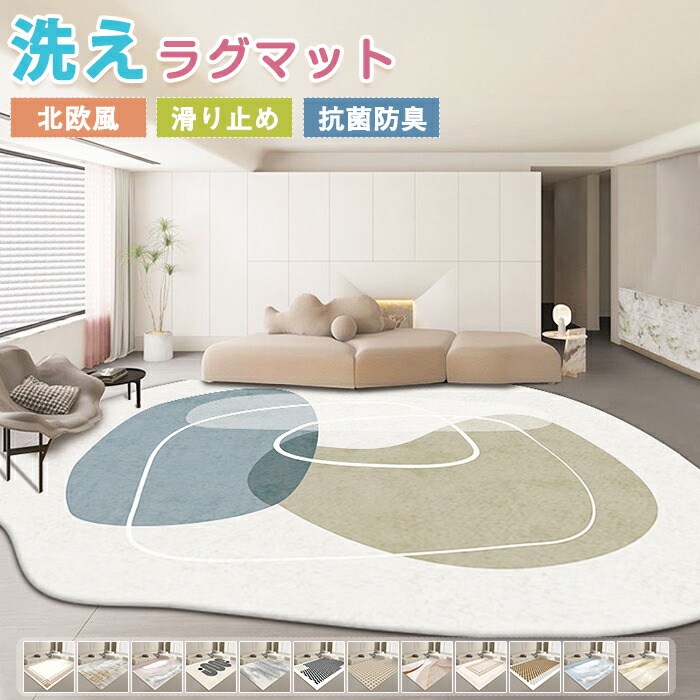ラグ 洗える カーペット 異型 200x300 ラグマット ラグカーペット 特殊形状 絨毯 大判 敷物 滑り止めマット フロアマット リビング 室内 なめらか インテリア ナチュラル おしゃ ふわふわ
