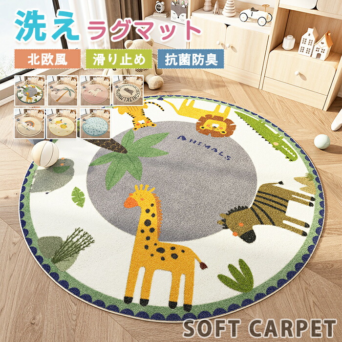 ラグマット ラグ 洗える ラグカーペット カーペット 円型 丸 直径60cm~200cm 北欧 滑り止め 大判 絨毯 動物 ふわふわ 防音 柔らかい 椅子マット 屋外 室内 子供 ホットカーペット対応